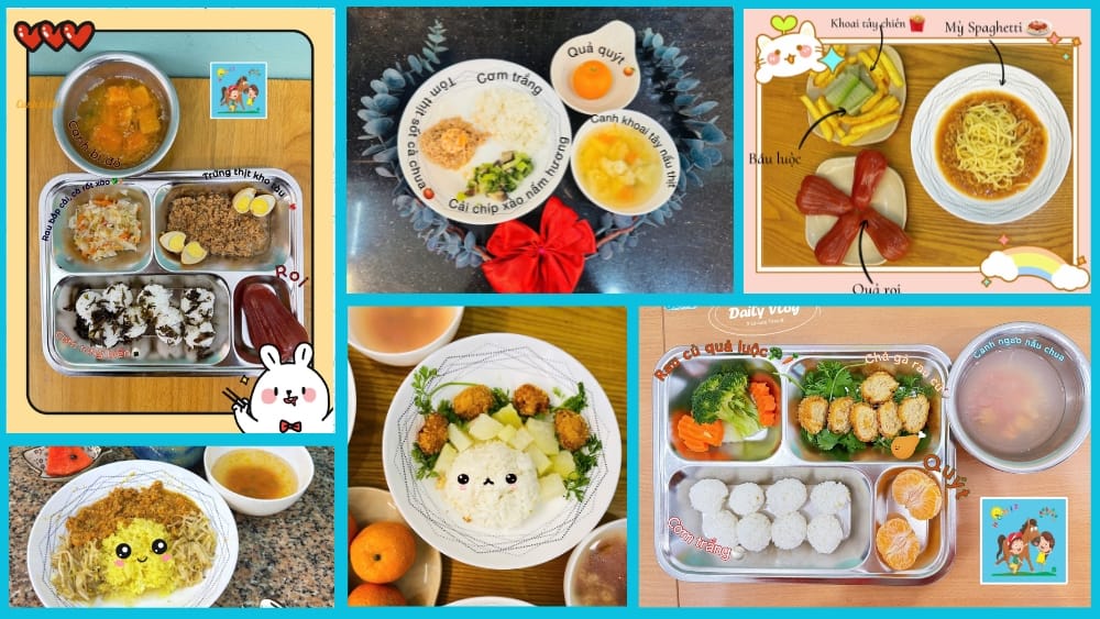 – Thực đơn lặp lại mỗi tháng, được điều chỉnh theo mùa vụ của rau, củ, và quả để đảm bảo độ tươi ngon và chất lượng.