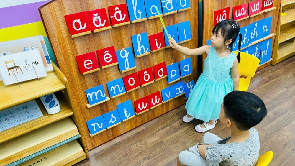 Toán học: Giúp trẻ xây dựng nền tảng tư duy logic. Trẻ được học về khoảng cách, không gian, tính trật tự, hình học, số học thông qua hệ thống giáo cụ minh họa trực quan sinh động và các trò chơi.