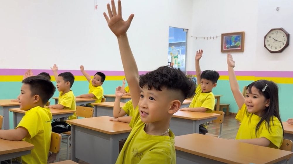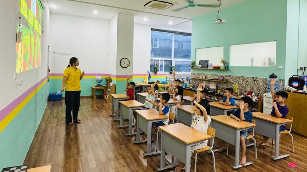 Con phát triển Tiếng Anh tự nhiên qua các hoạt động vui nhộn như kể chuyện, đóng kịch, làm thủ công, chơi trò chơi và vận động.