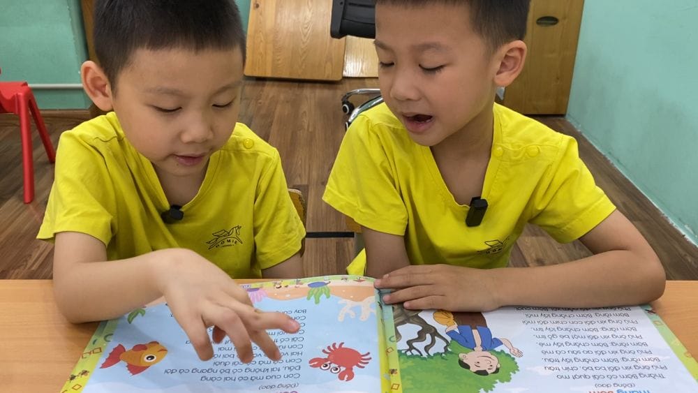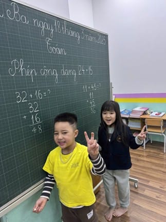 Mỗi ngày, con học Tiếng Anh cùng giáo viên bản ngữ và giáo viên Việt Nam. Giáo viên bản ngữ giúp con phát âm chuẩn và giao tiếp tự tin. Con còn học từ vựng qua các bài Khoa học và Toán bằng Tiếng Anh. Giáo viên Việt nam sẽ giúp con rèn luyện những nội dung tiếng Anh học thuật như nghe – đọc – viết.