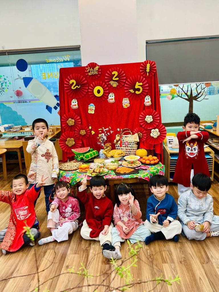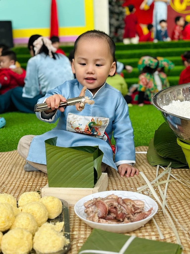 Các con được khám phá và tìm hiểu về những món ăn đặc trưng trong mâm cỗ ngày Tết – từ bánh chưng, dưa hành, giò chả đến các món canh, món xào. Đây là dịp để các con hiểu hơn về văn hóa ẩm thực truyền thống và giá trị của sự đoàn viên, quây quần trong mỗi gia đình.